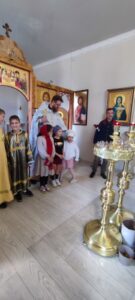 Свои молитвы о детях отец Антоний продолжил и после Литургии на молебне о чадах, в которых испросил у Бога им здравия, терпения и послушания. Также настоятель поздравил добрыми словами и сладким подарком с днем рождения маленькую прихожаночку Екатерину.